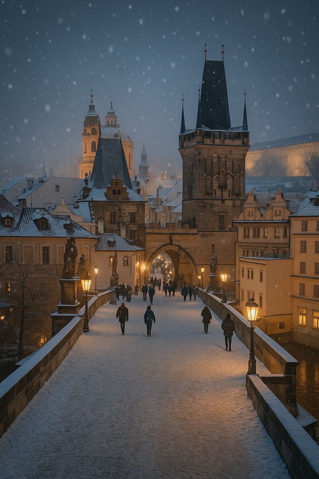 כיכר העיר העתיקה של פראג הופכת במהלך החורף למקום קסום. השעון האסטרונומי הנודע, שמושך קהל תיירים כל שעה עגולה אז מופיעות הדמויות הנעות שלו, נראה מרהיב על רקע הקישוטים החורפיים והעצים המוארים. בתקופת חג המולד, הכיכר מתמלאת בשוק חג המולד המסורתי עם דוכנים המוכרים יין חם מתובל, ממתקים צ'כיים ומלאכת יד מקומית. הבניינים הצבעוניים סביב הכיכר מקבלים מראה אגדתי כשהם מעוטרים באורות חג, והאווירה החמה והנעימה יוצרת ניגוד מושלם לקור שבחוץ. זהו המקום המושלם להתחמם עם טרדלניק (מאפה מתוק מקומי) ולהתבונן בחיי העיר החורפיים.